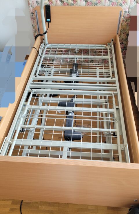 Bemerkungen: Elektrisch verstellbares Pflegebettgestell (Einlegerahmen mit Untergestell, aber ohne Bettrahmen) inkl. super flexibler Roviva Matratze günstig abzugeben. Passt vom Mass genau in einen 90×200 cm Bettrahmen.